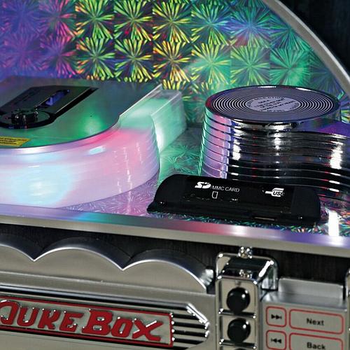 Offrez-vous une note déco vintage avec ce très joli jukebox rétro. Ce jukebox dispose d'un lecteur cd, d'une prise pour clés USB et SD, d'une radio FM, bluetooth et DAB+.
