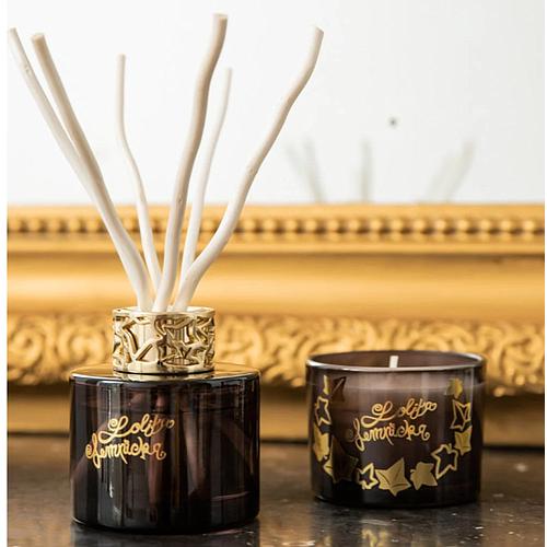 Coffret comprenant une mini bougie noire 80gr et un mini bouquet noire 80ml parfum lolita lempicka